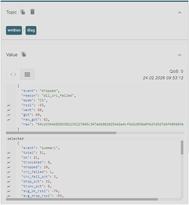 Podeślij wmbus/diag + 2–3 linie z Have data/DROPPED.
