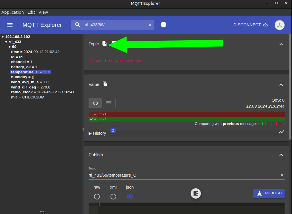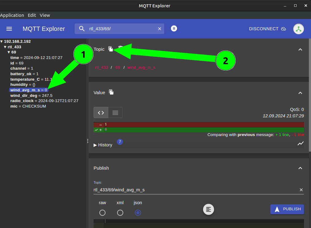 Dopiero na podstawie dokładnie zidentyfikowanego tematu (topic) można używać wartości z ładunków (value). W przeciwnym razie jeśli coś publikujesz w temacie na którum Twoje urządzenie nie czeka na komendę, to ładunek informacji trafia w próżnię, bo nasłuchuje na innym temacie.