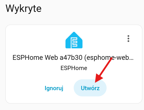 A jeśli nie zostanie wykryte (pod nazwą ESPHome Web a47b30) to się będziemy zastanawiać co masz skopane z konfiguracją sieci (ale skoro kiedykolwiek doszło do udanej Adopcji, to każde kolejne dodanie czegoś co działa też się musi udać), możesz dowolnym skanerem sieci przewąchać swoją sieć (albo sprawdzić listę klientów bezrzewodowych w routerze) szukając hosta esphome-web-a47b30 (ewentualnie z przyrostkiem .lan lub .local). Jeśli masz źle skonfigurowany WiFi MESH to może on stanowić problem (najprościej wyłącz wszystkie satelity oprócz mastera).