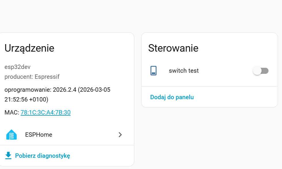 Kluczowa kwestia - jeśli robisz jakiekolwiek zmiany dotyczące wsadu binarnego (tzn. jeśli zmieniasz nazwę urządzenia bądź jakkolwiek modyfikujesz YAML) to MUSISZ skompilować i wgrać to do urządzenia z MCU (to jest de facto dosłownie jeden klik dzięki temu, że istnieje coś takiego jak OTA).