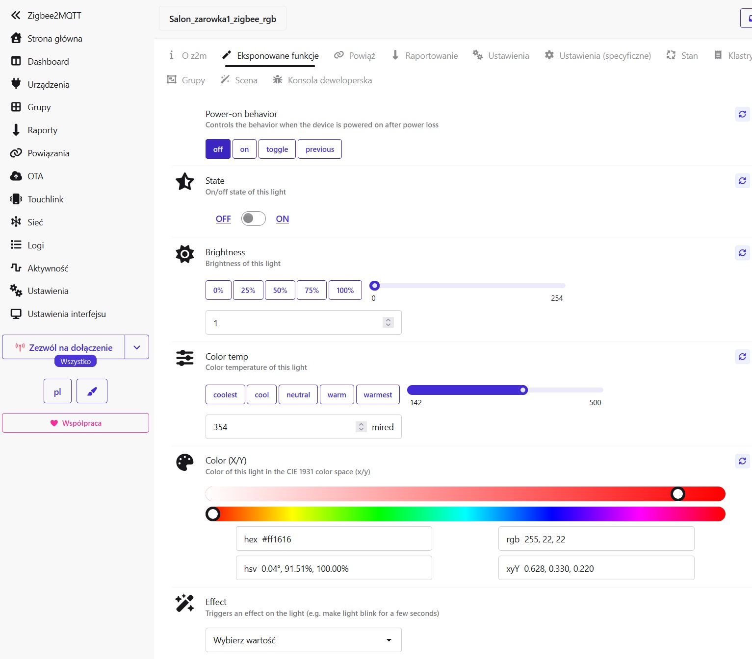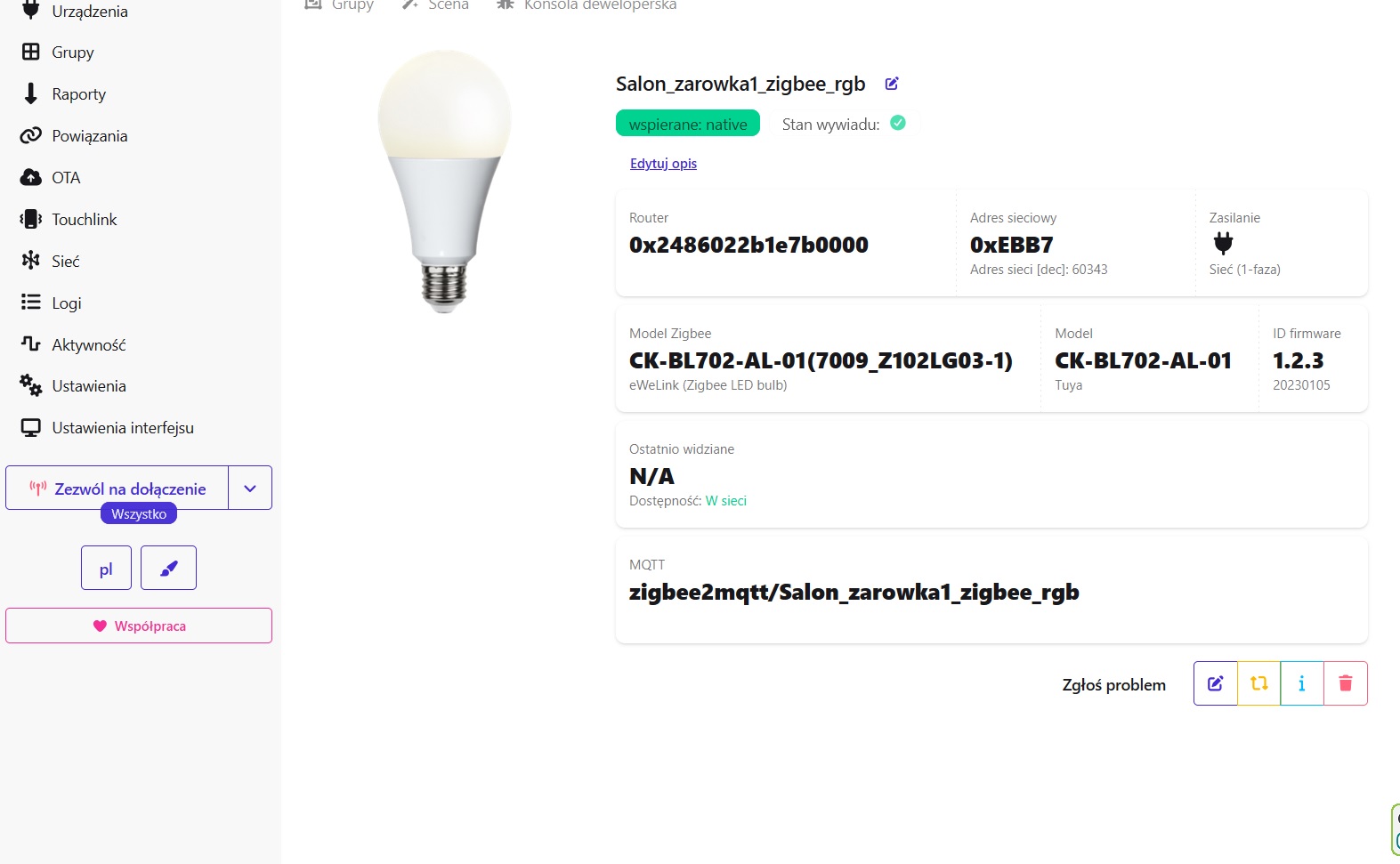 Dodałem zarówke Ewelink gu10 RGB przez zigbee2mqtt