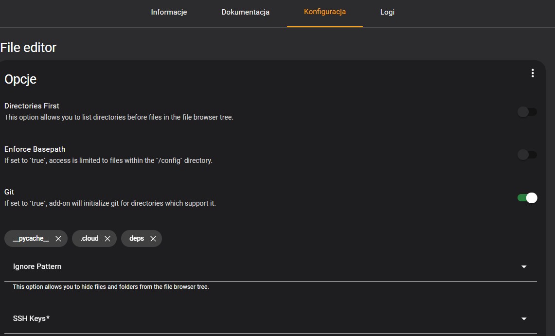 Cześć! Katalog /.storage/ jest ukryty i File Editor domyślnie go nie pokazuje. Najlepiej połączyć się z Hassio przez SSH lub Samba i ustawić wyświetlanie ukrytych plików/katalogów. Po wejściu do /config/.storage/ znajdziesz plik broadlink_remote_… Jeśli korzystasz z Samba share, włącz „Show hidden files” (np. w Windows przez Alt + V → Opcje folderów).