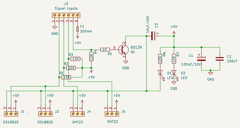 Jako, ze mialem 4 linie gpio padlo na redukcje do 2 DHT22 a w zamian linie “one wire” oraz wylaczanie zasilania dla czujnikow.