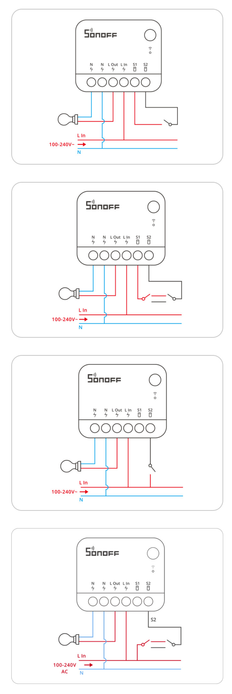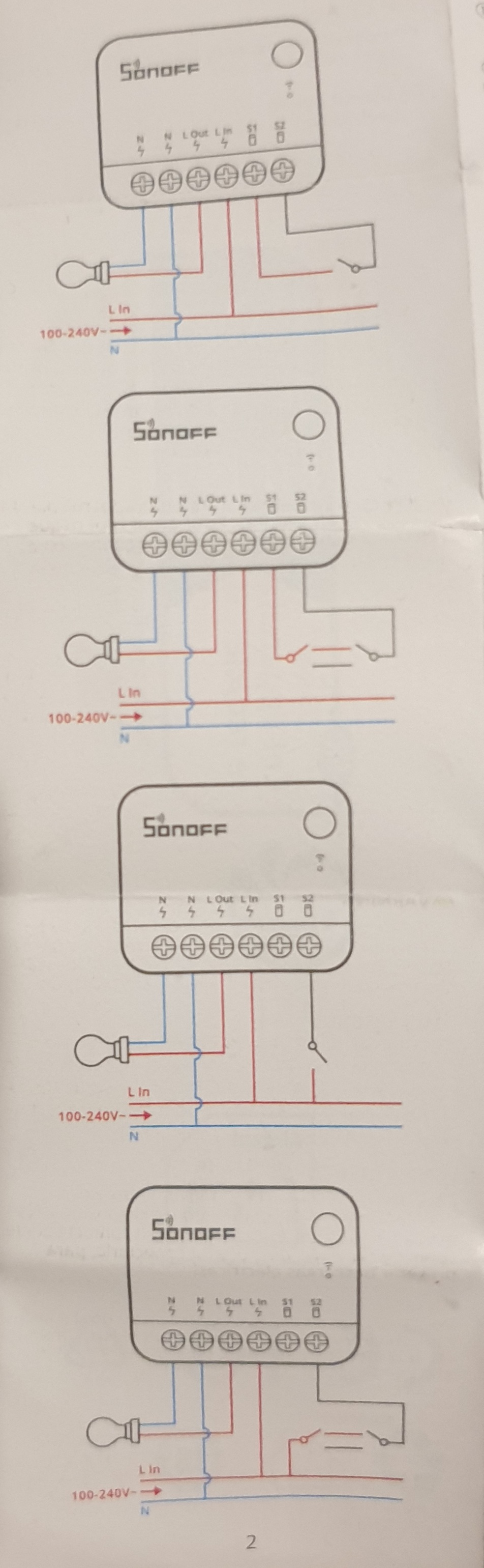 Dokładnie tak jak napisał @szopen mam taki moduł i sam z nim kombinowałem. Nie jestem fanem tych schematów bo namęczyłem się zanim to zrozumiałem. Używam ich do sterowania światlem akurat używam wersji ZBMINI bez neutralnego ale to nie ma znaczenia. Ja mam podpięte na L _n zasilanie i L_out wyjście na lampę do tego podlączony przełącznik pod S1 i S2 bazuje na swoim doświadczeniu oraz na schematach.