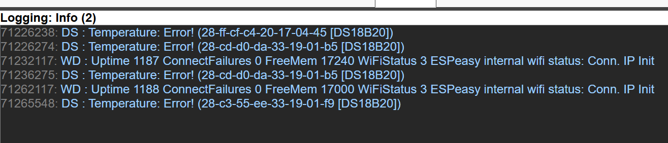mam pomiary temperatur zrobione na ESP Easy ESP8266 D1 + czujniki temperatur na Dallas DS18B20. W sumie takich czujników do tego ESP mam podłączonych 12 szt i jeden ESP obsługuje mi 12 pomiarów, drugi kolejne 4 pomiary.