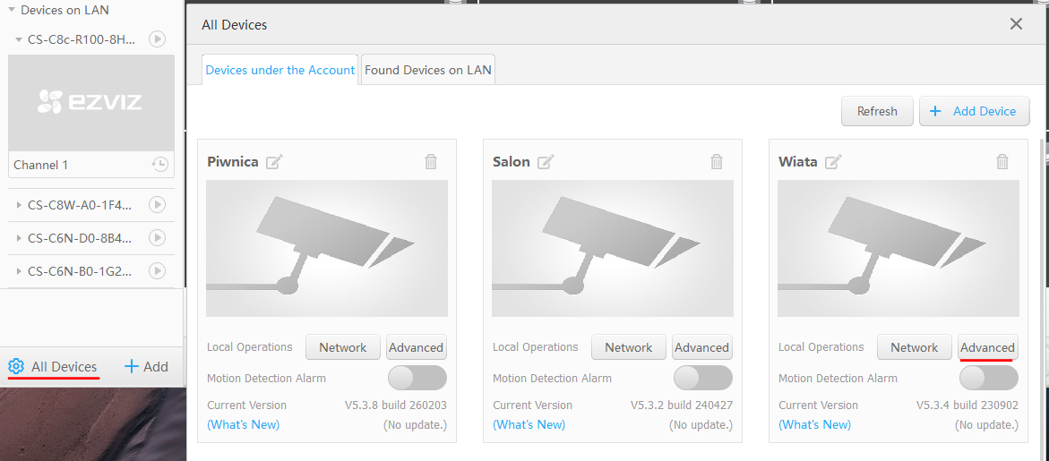 To że kanały odtwarzają się nam na jednym urządzeniu nie świadczy o tym że będą wyświetlane na innych o czym ostatnio się przekonałem. W ustawieniach zaawansowanych kamery jest jeszcze kilka rzeczy które możemy zmienić w przypadku problemów z odtwarzaniem lub niestabilnym kanałem. Widziałem kilka zgłoszeń że ezviz ucięło możliwość strumieniowania w kilku modelach ale myślę że nawet to można zweryfikować w programie.
