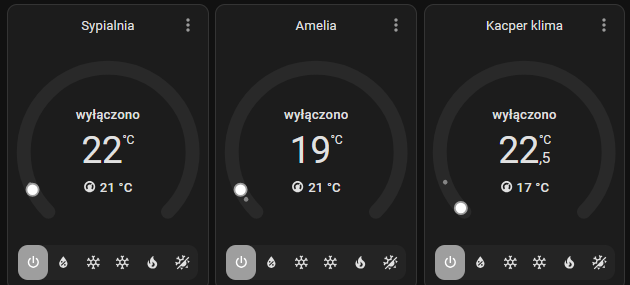 Klimatyzator mam podpięty przez wyłącznik zigbee na listwę RMDZB-1PNL63 . Dodatkowo wyłącznik ma opcje wyłączania po wykryciu anomalii np. przekroczenie prądu, przebicie, za niskie lub za wysokie napięcie. Całe zużycie raportuje do HA