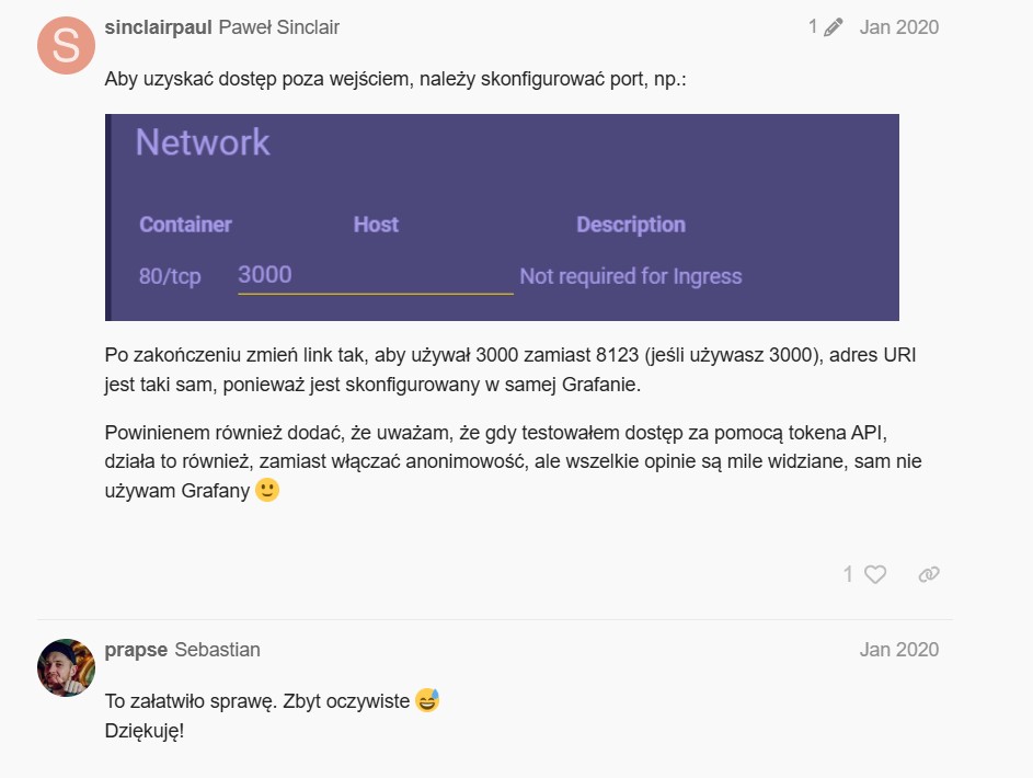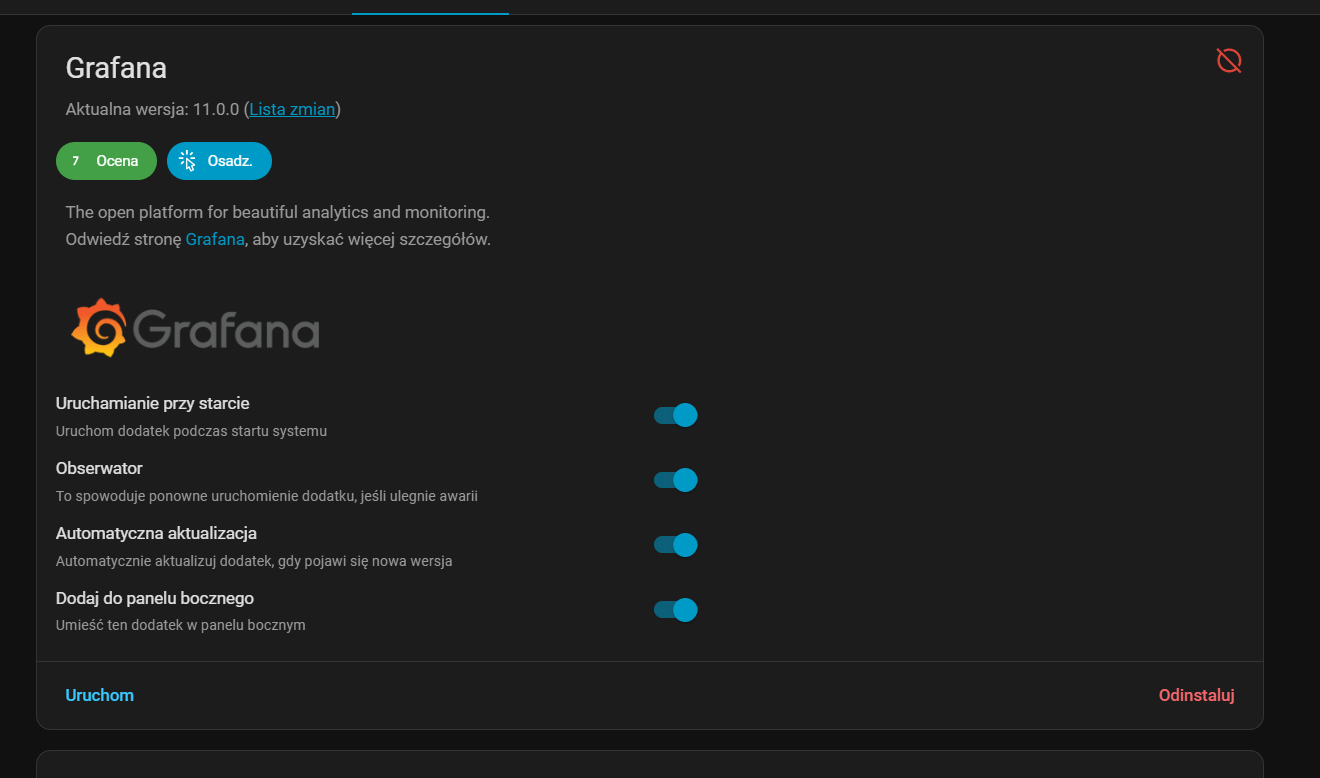 po zmianie adresu na 3000 w konfiguracji dodatku Grafana (o czym było wyżej)