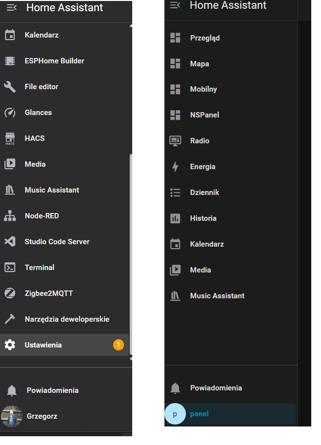 dobra, chyba mnie naprowadziłeś, innym użytkownikiem byłem zalogowany do HA lokalnie a innym do HA zdalnie poprzez ZeroTier dlatego nie było widać grafany i innych zakładek