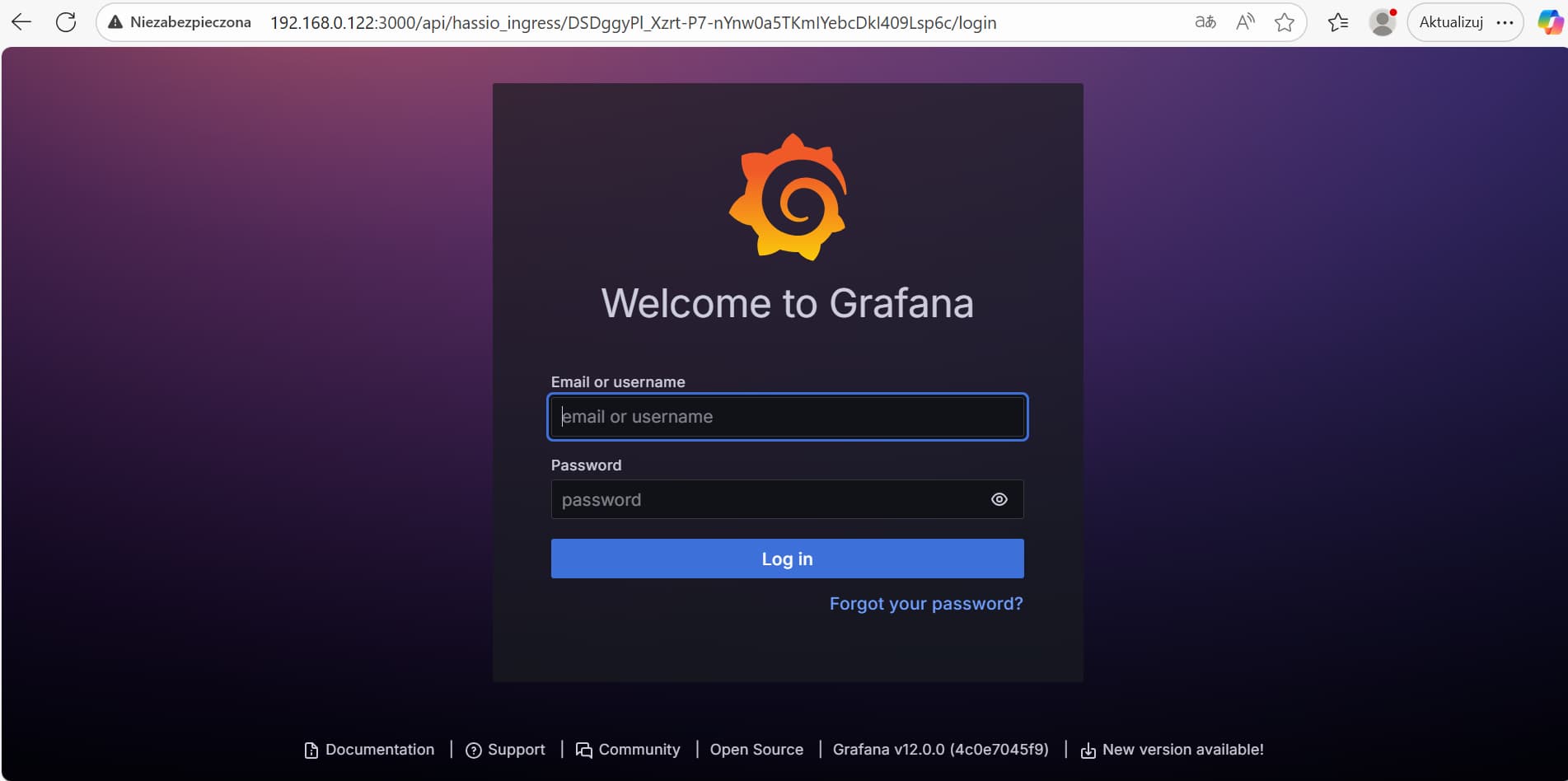 Może trzeba wpisać poświadczenia z grafany, konkretnego użytkowania którego masz w grafanie