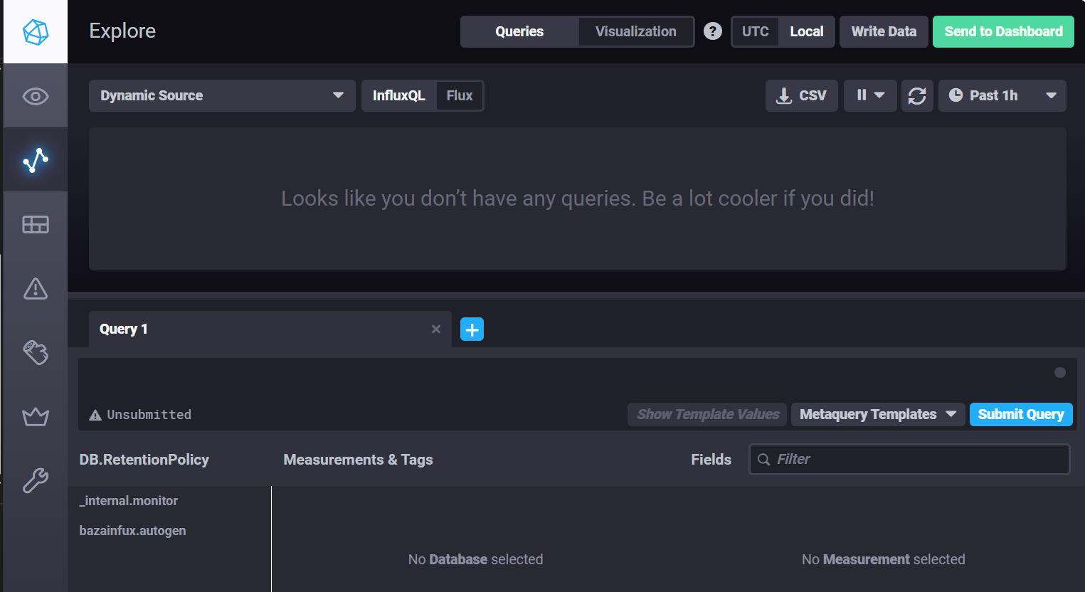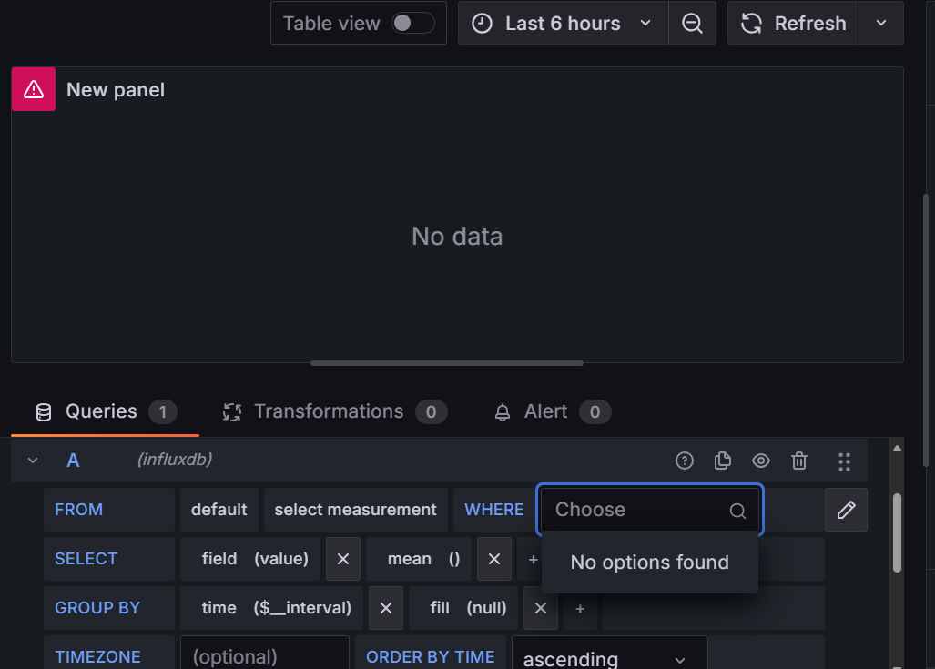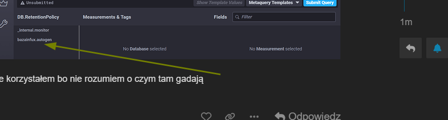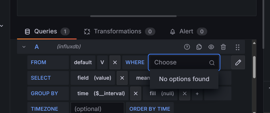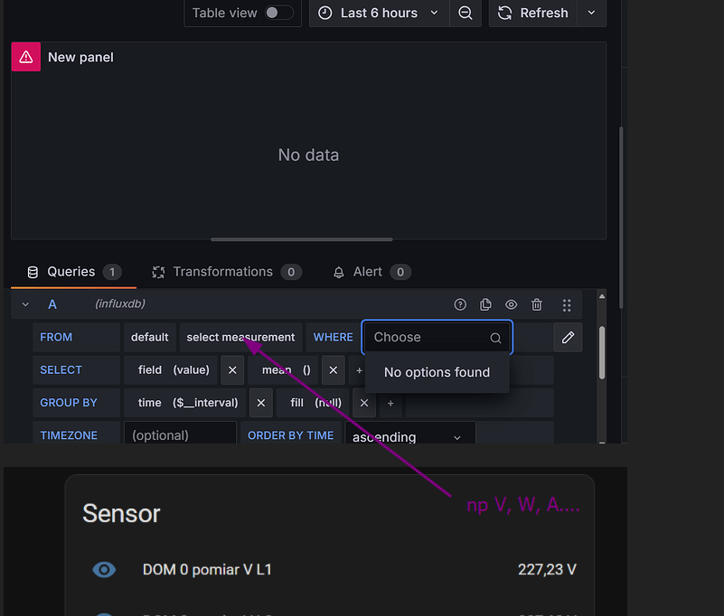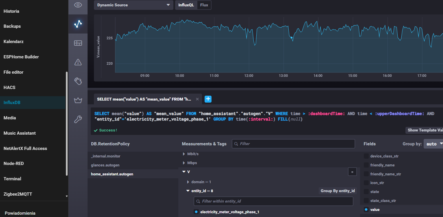 Zainstalowałem bazę Influx oraz grafanę i jak chcę utworzyć wykres to nie mam możliwości wybrania entity na liście WERE bo lista jest pusta jak na załączonym screenie, stawiałem HA od nowa i jeszcze prawnie nie mam w nim nic ale jakieś pomiary są już przez HA pokazywane i wykresy też tyle tylko że nie mogę tego utworzyć w grafanie, gdzie może leżeć problem ?