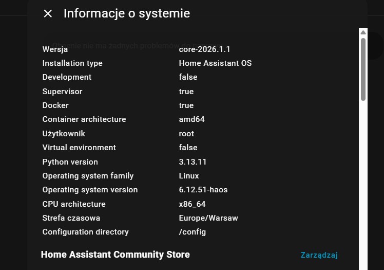 Mam taki problem że po aktualizacji Home Assistant do wersji 2026.1.1 utraciłem możliwość tworzenia jakiejkolwiek automatyzacji. Te które zostały utworzone przed aktualizacją działają i jest wszystko ok. Natomiast dodałem integrację pilota uniwersalnego Broadlink RM mini 3 wszystko ładnie się dodało i teraz chcę dodać jakąkolwiek automatyzację scene czy skrypty i niby mogę dodać encję urządzenia zależnie co chcę uzyskać i tu zaczynają się problemy bo raz się niby uda dodać automatyzację ale po zapisaniu nie ma tej automatyzacji lub na chwilę się pojawi i po odświeżeniu strony już jej nie ma. Już restartowałem HA w logach nic nie widać pamięć przeglądarki wyczyszczona a dalej nie idzie dodać żadnej automatyzacji skryptu czy sceny. Logowałem się z innej przeglądarki i z telefonu ale bez zmian muszę za każdym razem odświeżać stronę to coś niby idzie ale w pewnym momencie przy tworzeniu automatyzacji już odświeżanie nie pomaga. Nie wiem co mogę jeszcze zrobić bo siedzę już od tygodnia i zadnej automatyzacji nie idzie zrobić a co najlepsze zainstalowałem HA na WMware i na czystym HA jest to samo wieć nie wiem gdzie może tkwić problem