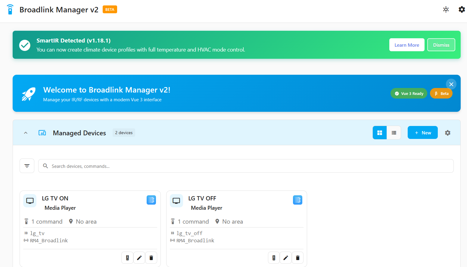 Jeżeli chcesz korzystać z bardziej zaawansowanej konfiguracji BR to skorzystaj z broadlink-manager-v2