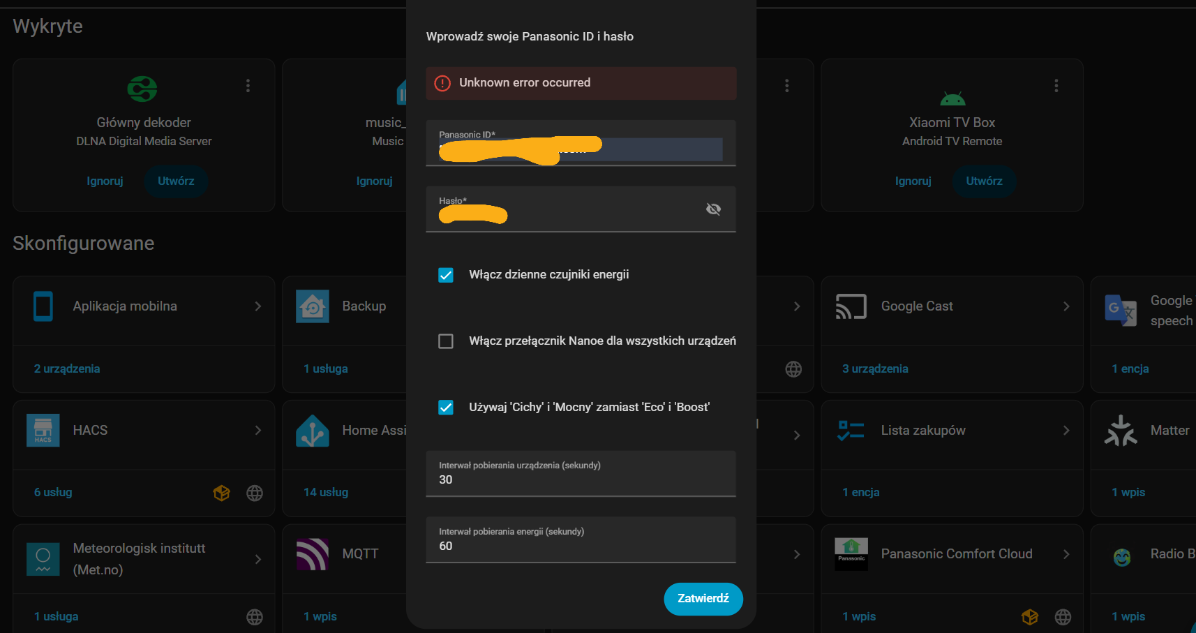 Nie mamy tu (sprawnych) szklanych kul i nie wiemy czy masz niezerowe doświadczenie z komponentami niestandardowymi z HACS GitHub - sockless-coding/panasonic_cc: Panasonic Comfort Cloud - Home Assistant Component