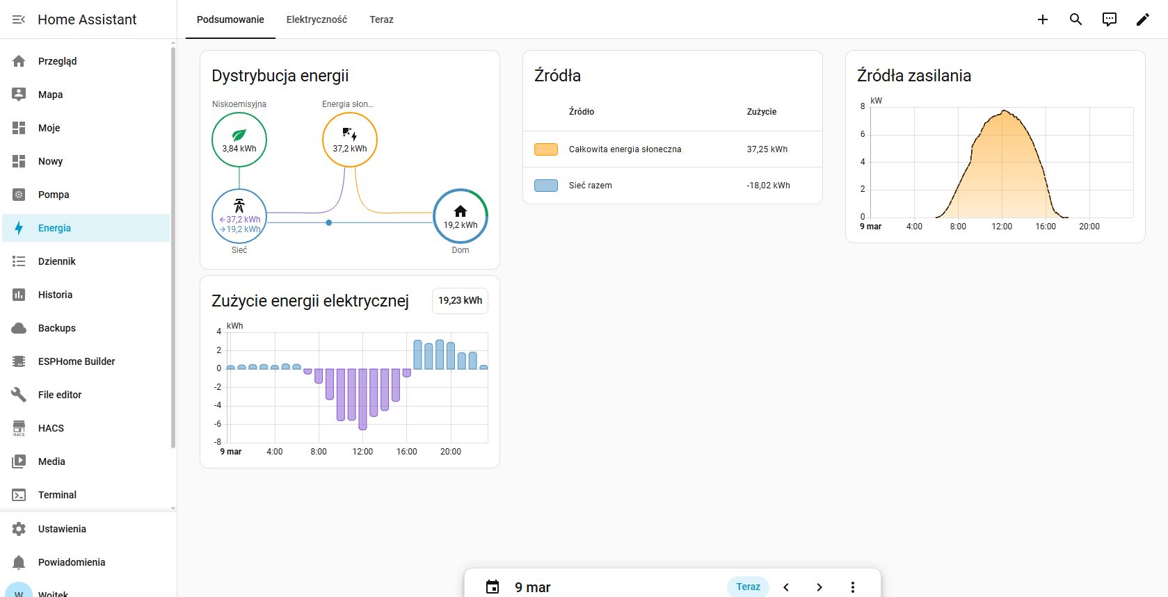 Według mnie i licznika taurona się zgadza, wyprodukowałem 37,2 kWh ( faktycznie wyprodukowałem 49kWh, ale reszta poszła na autokonsumpcję) tyle wprowadziłem do sieci (ale powinienem od tego odjąć 20% za magazynowanie w wirtualnym banku), a z sieci pobrałem za cały dzień 19,2KWh (pobrałem więcej o 12kWh ale to jest niewidoczne bo była autokonsumopcja w budynku)