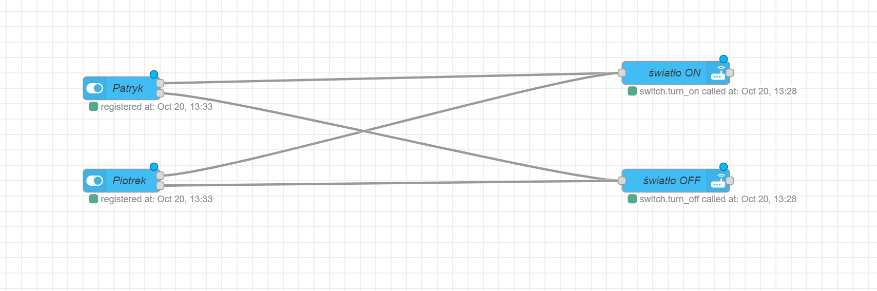 dla testu mam 2 przyciski - 2 osoby i jedno światło