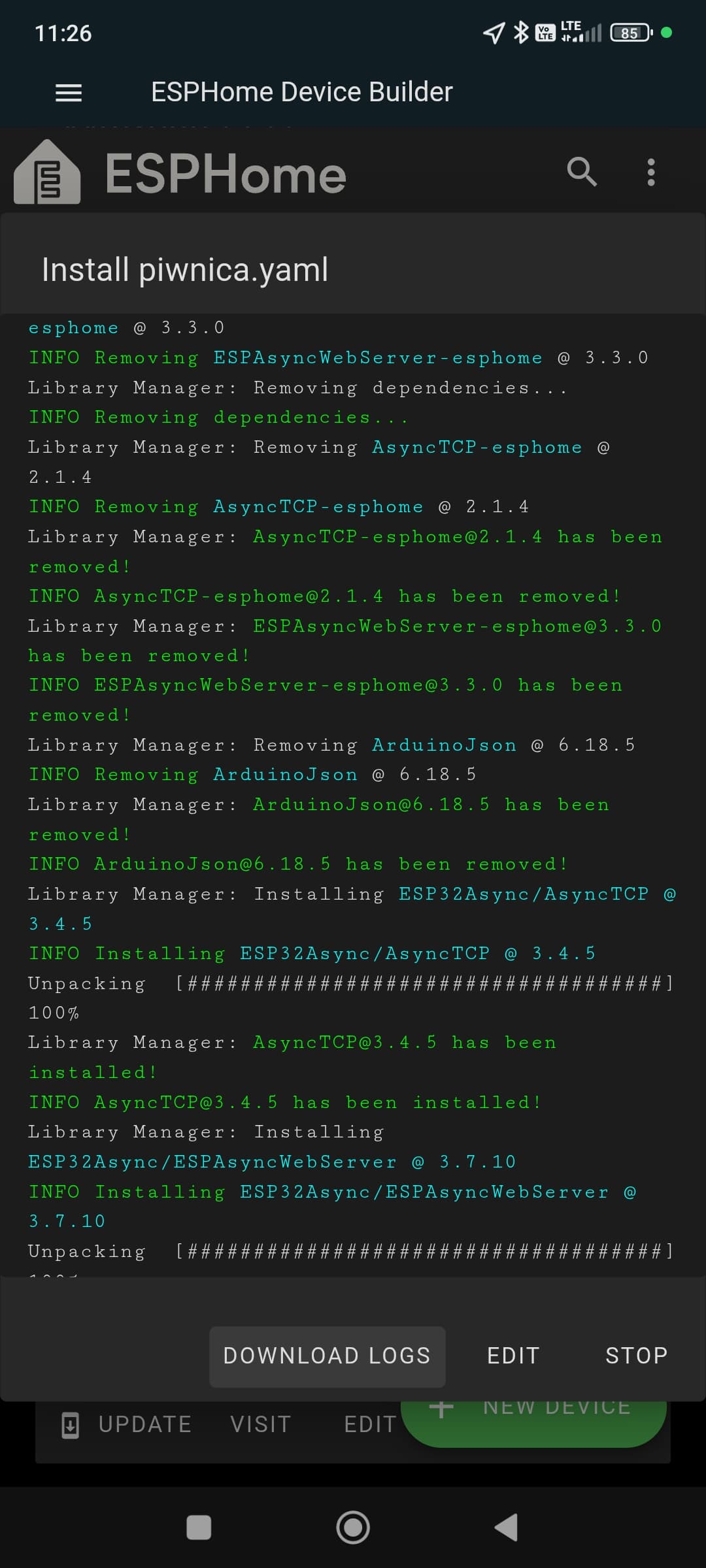 Widzę, że przy kompilacji zaktualizowało biblioteki TCP. Zapewne coś namieszali. Da się cofnąć ESPHome do starszej wersji bez cofania całego HA?