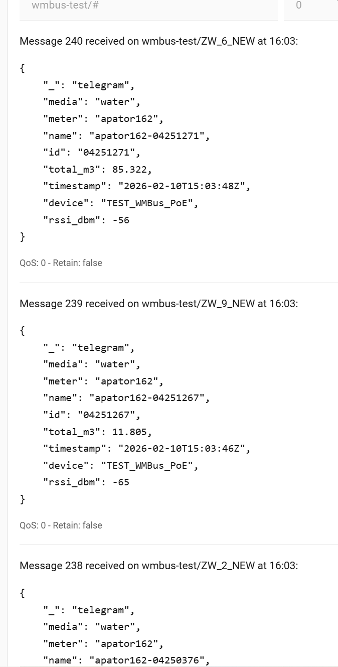 Dodałem więc MQTT i widzę w brokerze MQTT przychodzące wiadomości jak np. taka (przykład innego licznika niż na zdjęciu powyżej)