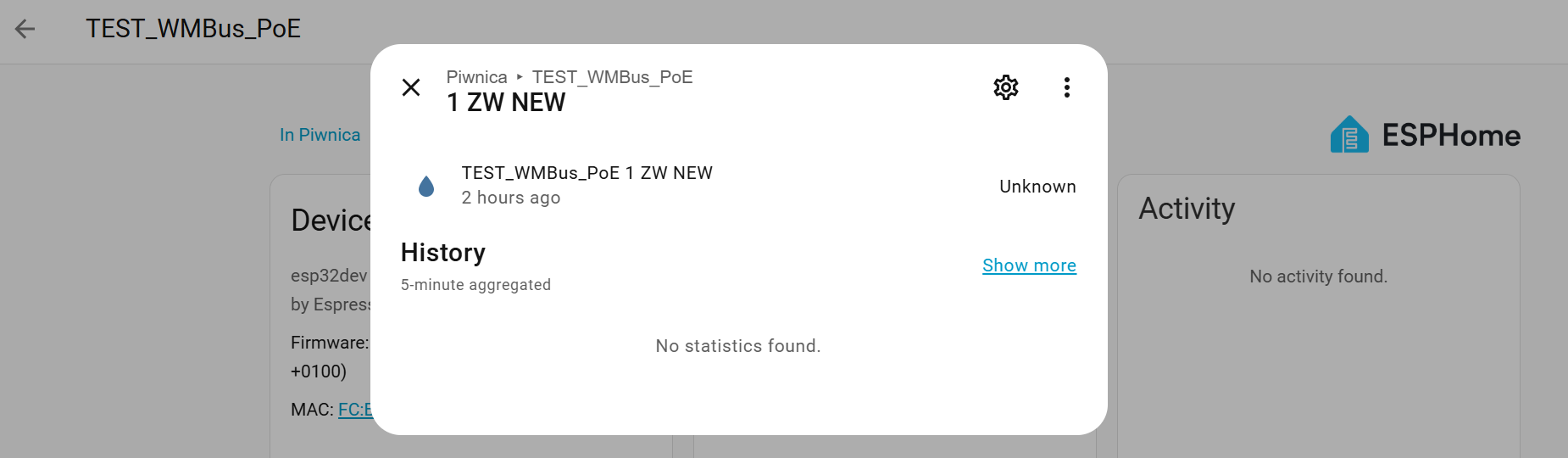 Mam skonfigurowany projekt w wersji 5 wraz z SX1262, bardzo ładnie odczytuje telegramy nawet widzę obce z RSSI -101 dBm w konsoli ESPHome, ale wartości dotyczące moich skonfigurowanych liczników nie widzę w HA.