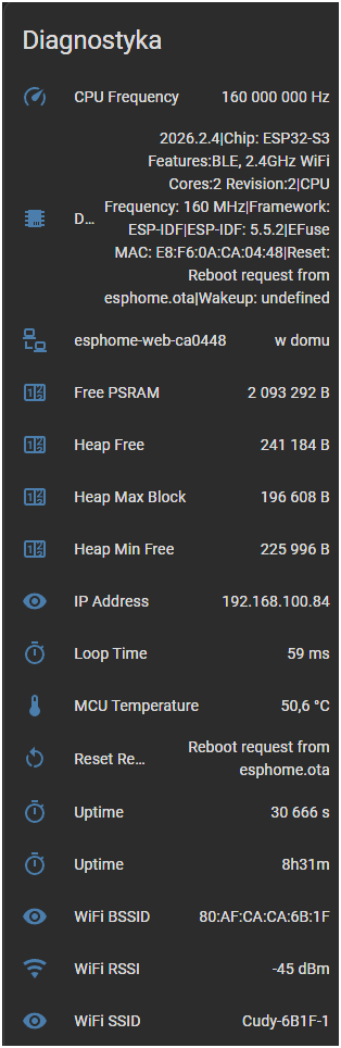 Czy komuś wywaliło odczyty po update esphome do wersji 2026.3.0? Ja nie aktualizowałem jeszcze ale kolega już mi meldował że jemu odczyty znikły. Wersja repo to: github://SzczepanLeon/esphome-components@5.0.4. Po przywróceniu do poprzedniej wersji odczyty nadal działają czyli wszystko wróciło do normy.