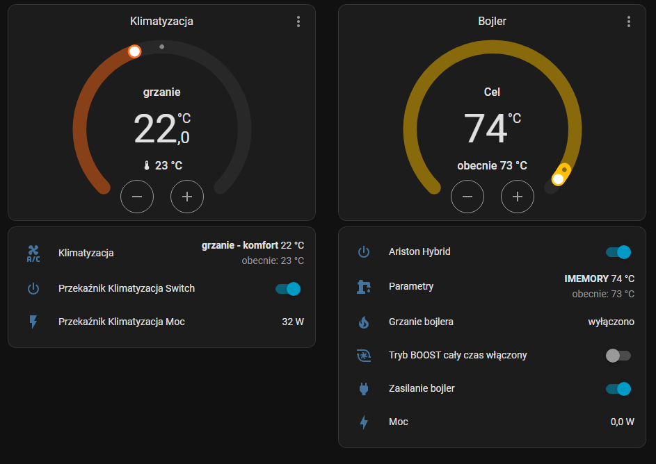 Witam, rozumiem że masz już zintegrowana klimę i bojler tak jak piszesz i jesteś w stanie przez HA uruchomić i zmieniać parametry.