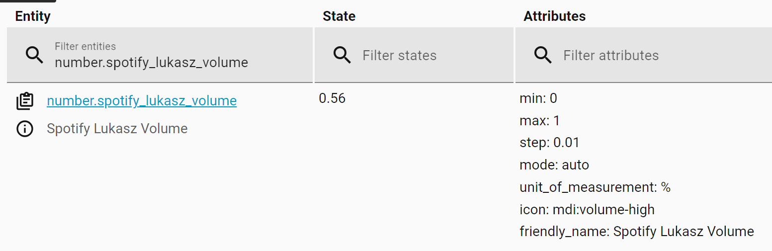 Cześć, interesuje mnie sterowanie głośnością Spotify za pomocą suwaka w HA (komunikacja dwustronna). Wcześniej zrobiłem to za pomocą automatyzacji i input_number ale działało tragicznie więc teraz mam zrobione tak: