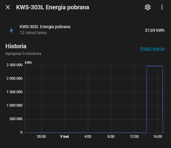 Na chwilę zmieniłem na uint32 32 bit unsigned integer (2 registers holds 1 value). i zrobiło się coś takiego(teraz nie dam rady tego usunąć 2500000kwh i licznik wskazywał jakieś kosmiczne wartości zużycia energii.