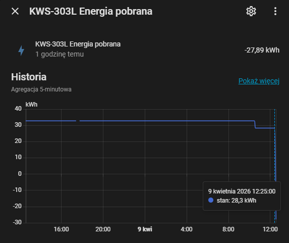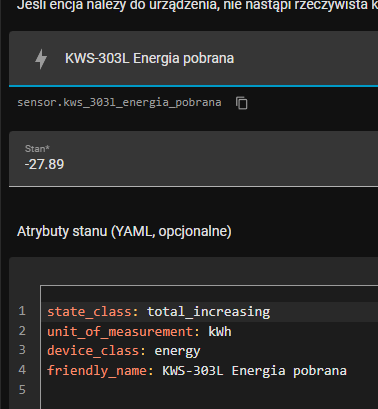 Natomiast w kwestii samego wskazania - wydaje się, że to integracja modbus i masz w konfiguracji niewłaściwy typ danych (to na 100%, bo dla monotonicznie rosnącej dodatniej wartości powinien być unsigned, a najwyraźniej masz użyty jakiś typ signed) i prawdopodobnie za małą długość rejestru (przepełnienie przy obecnej długości nastąpi mniej więcej po takim czasie od teraz, jak upłynął dotąd od instalacji licznika, więc to kolejny potencjalny problem, który jeszcze się nie ujawnił)