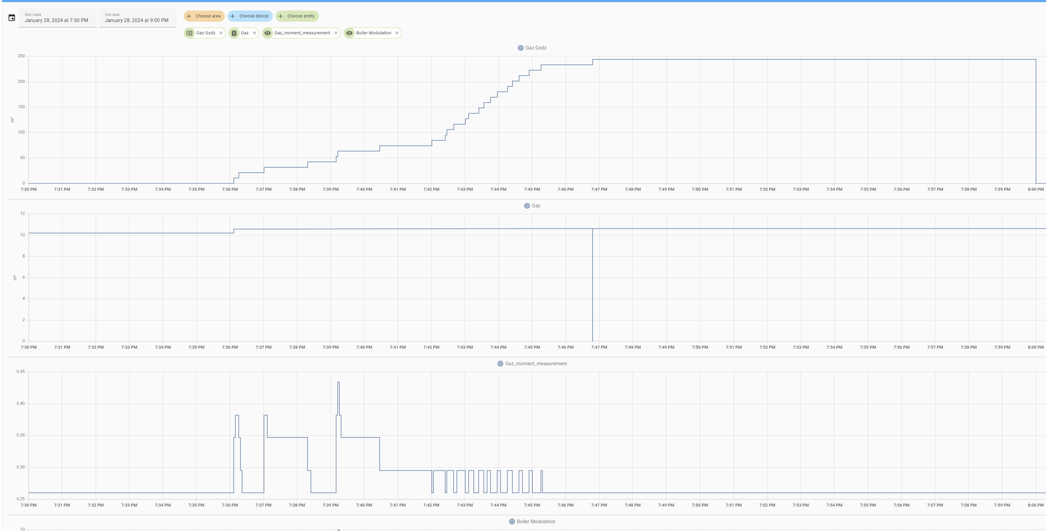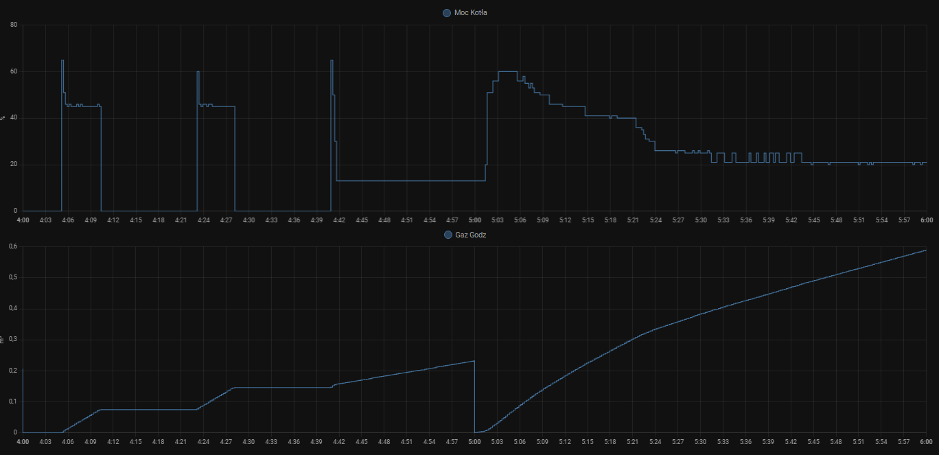 Na twoim wykresie widać ze często jest zapis Gaz Godz. mimo ze kocioł pracuje na tej samej modulacji.
