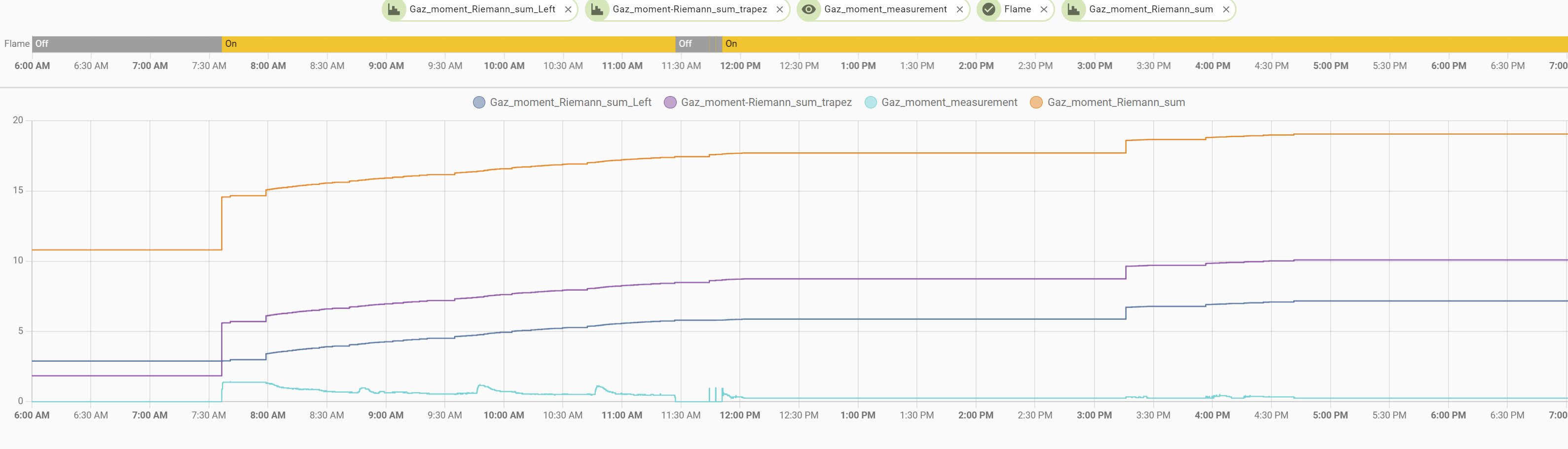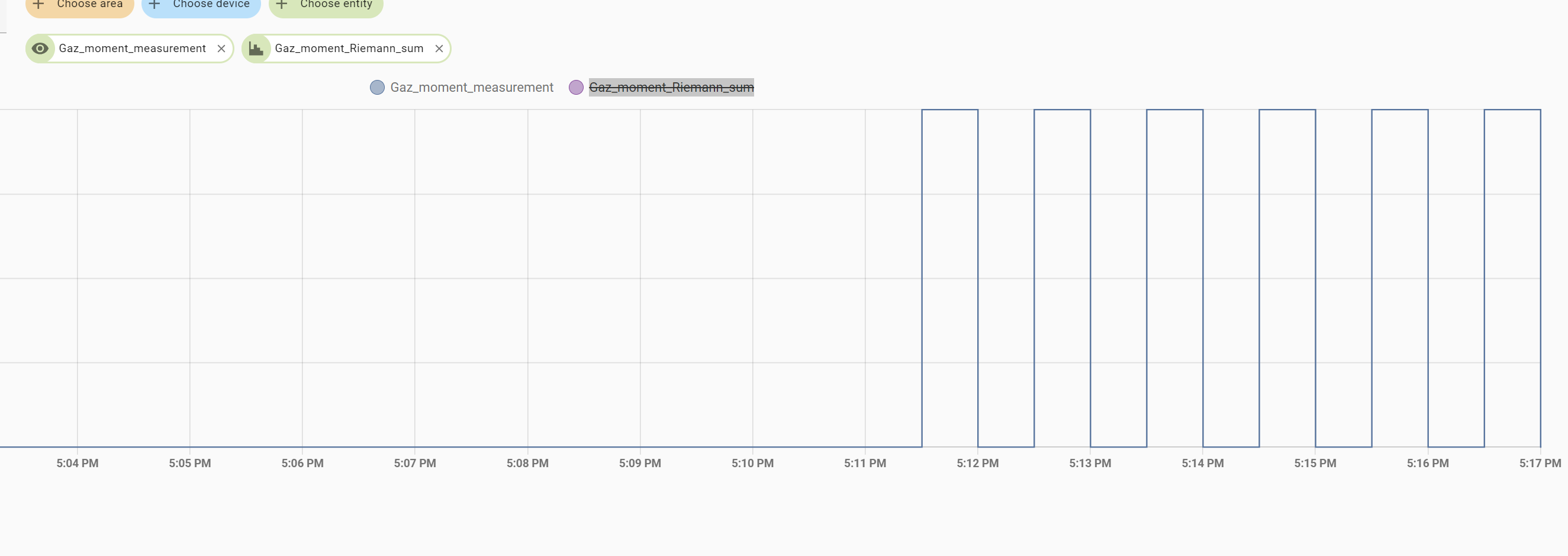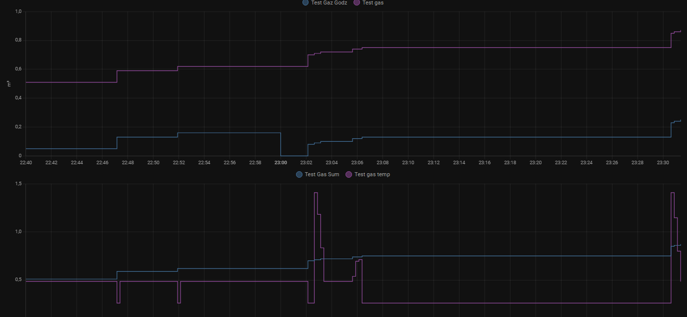 Aby to dalej ciągnąc musze znaleźć sposób, aby sensor źródłowy do całkowania zapisywał częściej lub użyć innej metody liczenia.