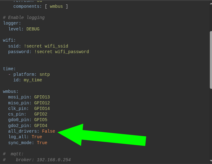 Powalczyłem trochę z inną wersją (czystą) Ubuntu i udało mi się skonfigurować ESPHome. Potrzebuję pomocy aby zobaczyć czy moja płytka złapie pakiety wysyłane przez mój licznik. Jak ma wyglądać YAML abym tylko zobaczył telegramy nawet te zaszyfrowane wysyłane przez mój licznik o znanym ID. Chcę tylko zobaczyć w logach aby mieć pewność, że wszystko działa.