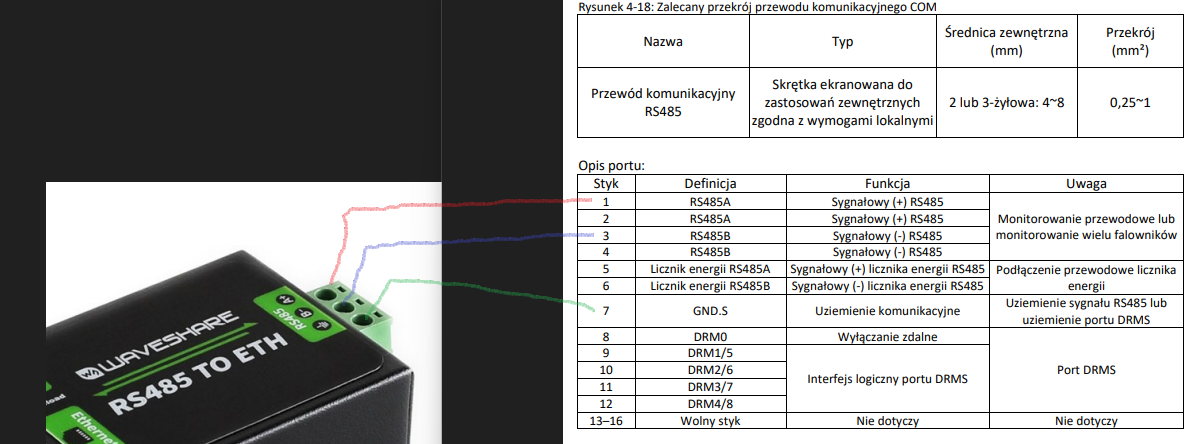 Jeśli chodzi o adresacje i podłączenie do RS485 wzorowałem się na tym co znalazłem na forum