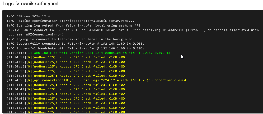 INFO Successfully connected to falownik-sofar @ 192.168.1.60 in 0.287s
