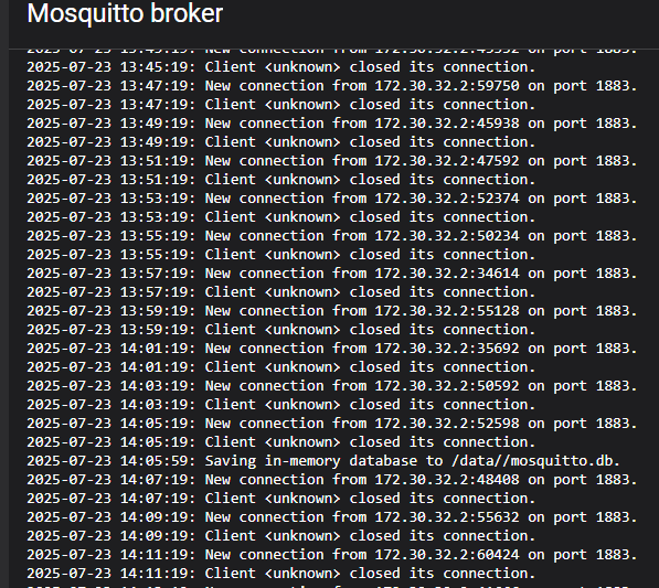 2025-07-22 18:10:17.467268 INFO MQTT: Connected to MQTT broker at URL 192.168.28.58:1883 with paho-mqtt
