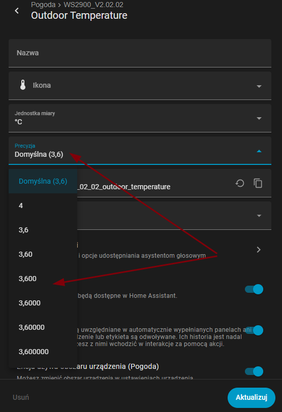 @Piter w kodzie mam id encji i w menu mam ustawienia precyzji ale pomimo ustawienia precyzji na 1,1 pokazuje jak widać.Dziwna historia bo są momenty że pokazuje dobrze czyli jedno miejsce po przecinku a za chwilkę już wiele po przecinku?