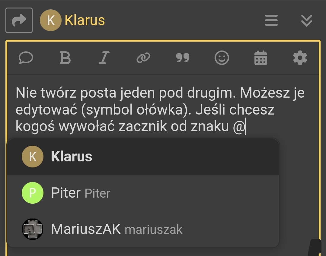 @Klarus - Nie twórz posta jeden pod drugim. Możesz je edytować (symbol ołówka). Jeśli chcesz kogoś wywołać zacznij od znaku @ i możesz wówczas wybrać użytkownika forum.