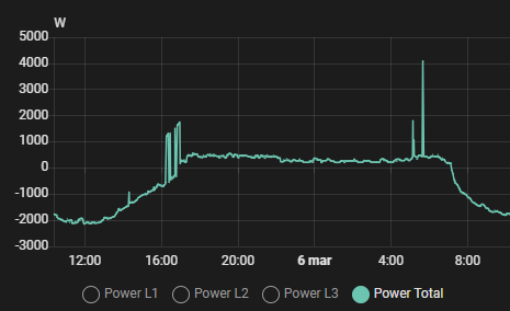 I jaką mocą można obciążyć. Tu można odjąć 100W do 500W na podłączone inne odbiorniki do inwertera off-gridowego. Można mierzyć moc podłączonych odbiorników i w zależności od obciążenia ,obciążać grzałkę ,ale wymaga to już wykonywanie obliczeń w NodeRed