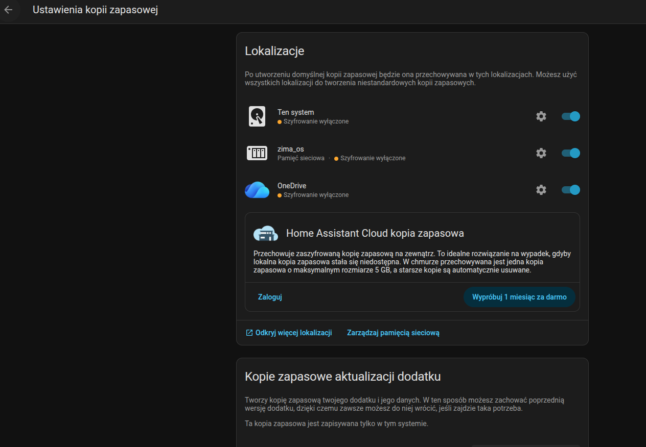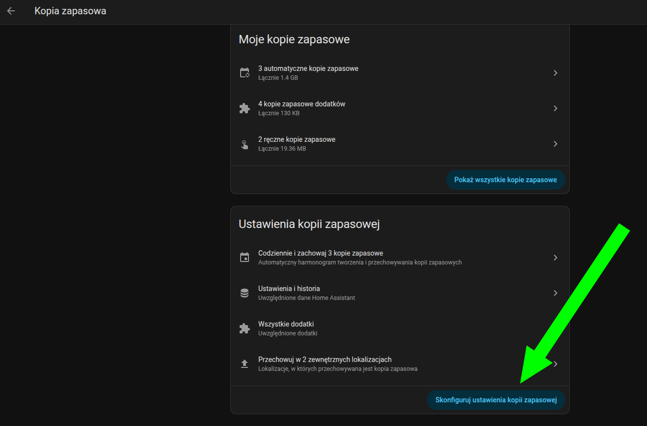 Od pewnego czasu HA ma funkcjonalność, która nawet przewyższa tę wcześniejszą z AddOn. Przejdź do ustawienia -> system -> kopie zapasowe -> skonfiguruj ustawienia kopi zapasowej i masz w tym miejscu różne możliwości.