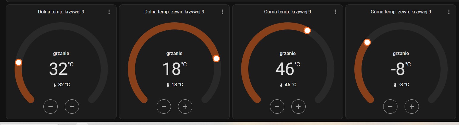 Witajcie, walczę z dodawaniem encji do PC Kaisai po Modbus. Brakuje mi jeszcze tych czterech ustawień ze screena dla krzywej grzewczej nr. 9, dałem taki wpis jak poniżej i niby pojawia się termostat ale nie można zmienić parametru
