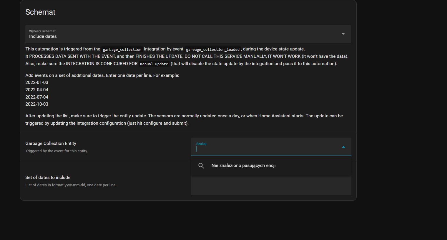 Zainstalowałeś ten niewspierany i wycofany z HACS (przeczytaj dokumentację zanim zainstalujesz cokolwiek) ? Poza tym w HACS nie ma DODATKÓW. Skorzystaj z GitHub - mampfes/hacs_waste_collection_schedule: Home Assistant integration framework for (garbage collection) schedules