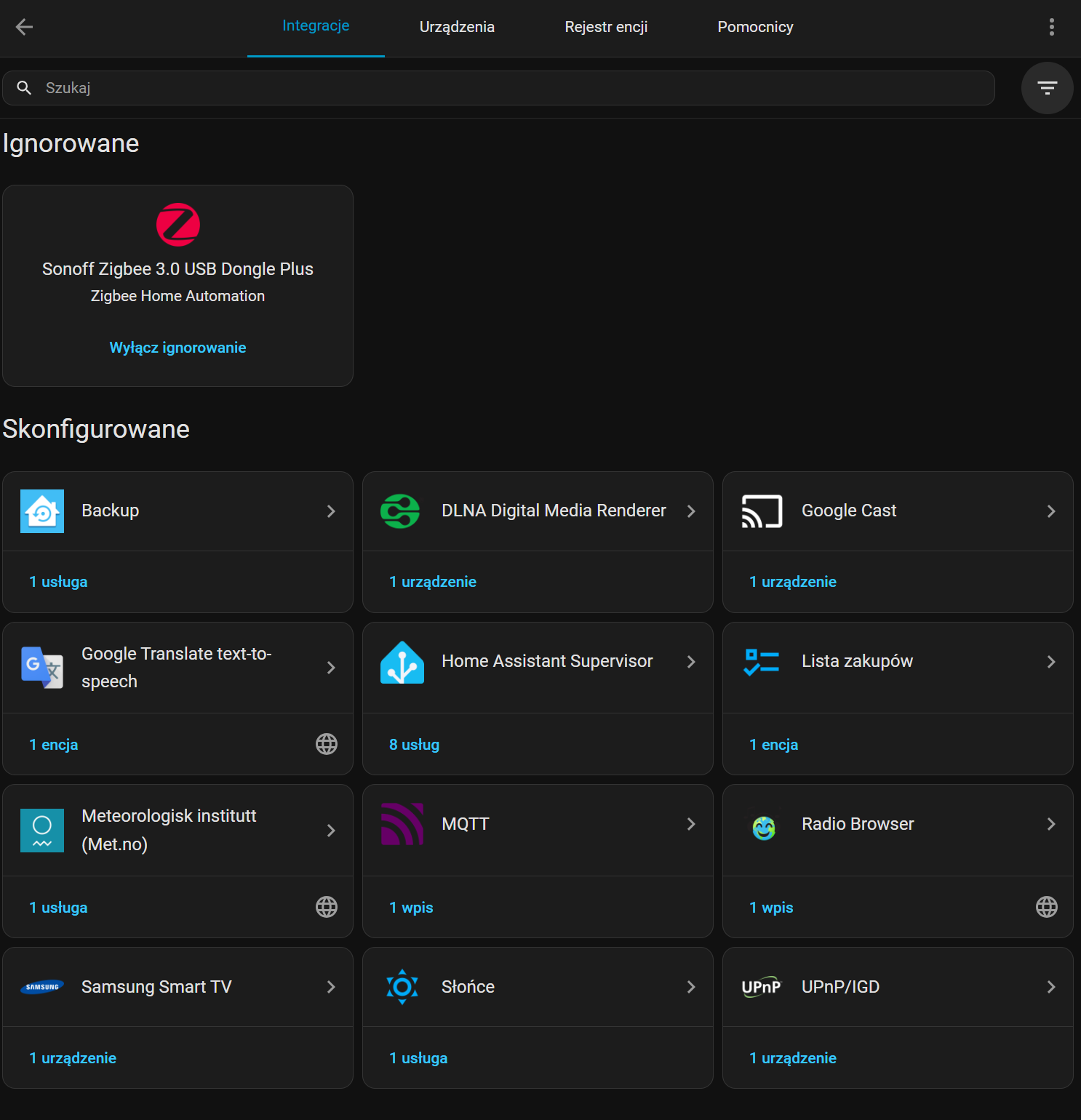 Dziś uruchomiłem od NOWA HA bez włączonej intergracji Sonoff Zigbee 3.0 USB Dongle Plus Zigbee Home Automation (miałem opcję Ignoruj i tą wybrałem lub utwórz) . Teraz ZHA mam na liście IGNOROWANYCH integracji a aktywną intergację Z2M.