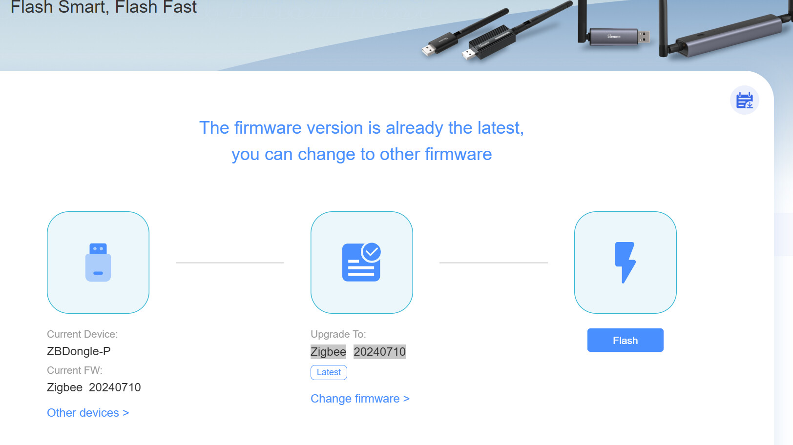 - Zaktualizowałem Fimware do wersji 20240710 (dla coordinator) poprzez stronę https://dongle.sonoff.tech/sonoff-dongle-flasher/