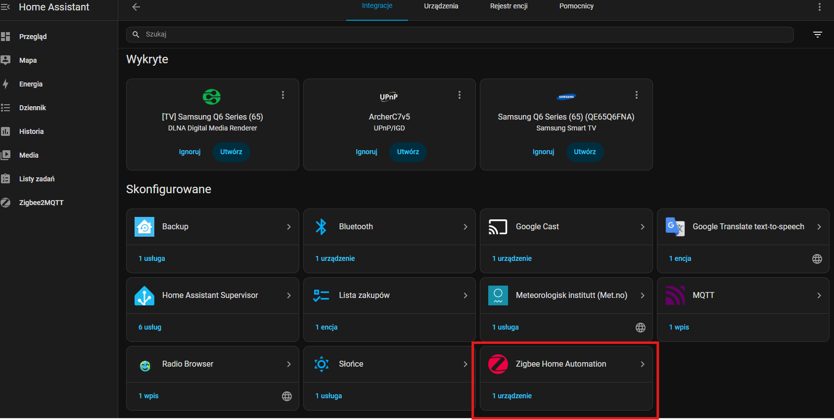 Niestety na ostatnim etapie nie udało mi się uruchomić dodatku z2m ![]()