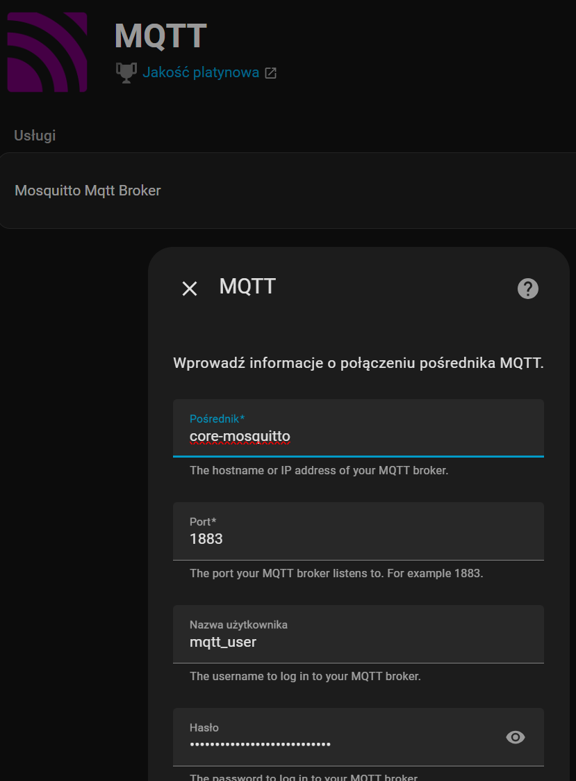 więc usuń też całą Integrację MQTT i dodaj ja ponownie nie grzebiąc w jej konfiguracji (ten użytkownik powinien się nazywać homeassistant z długaśnym generowanym losowo hasłem ale jak by się nie nazywał po świeżej instalacji Integracji nie grzeb tam).