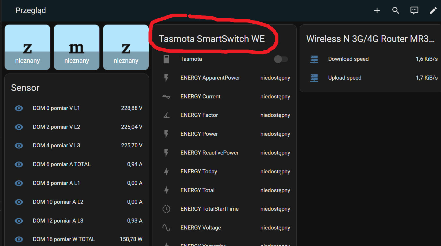 to jest ta jedyna widziana przez HA i co ciekawe jak widać jest ona powtórzona drugi raz jako TASMOTA