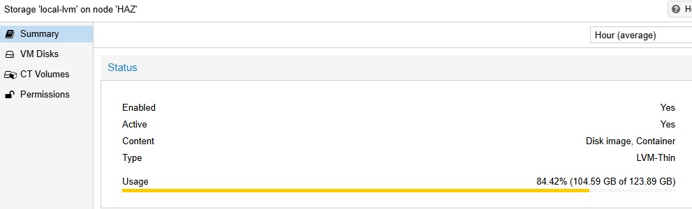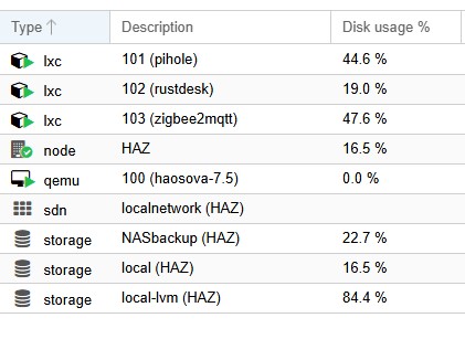 swoją drogą potrzebujesz większego wolumenu lvm dla HAOS (a więc większego ssd na którym zainstalujesz proxmoxa, bo na tym który masz chyba nie ma o co walczyć, ale zobaczmy co zajmuje miejsce…) skoro nie panujesz nad tym co się dzieje wewnątrz HAOS