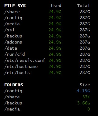W terminalu HA proponuję df -h a potem się pomyśli.