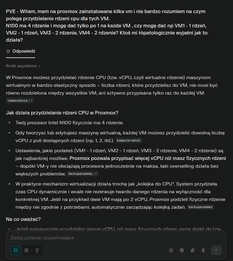 N100 ma 4 rdzenie i mogę dać tylko po 1 na kazde VM , czy mogę dać np VM1 - 1 rdzeń, VM2 - 1 rdzeń, VM3 - 2 rdzenie, VM4 - 2 rdzenie? Ktoś mi łópatologicznie wyjaśni jak to działa?