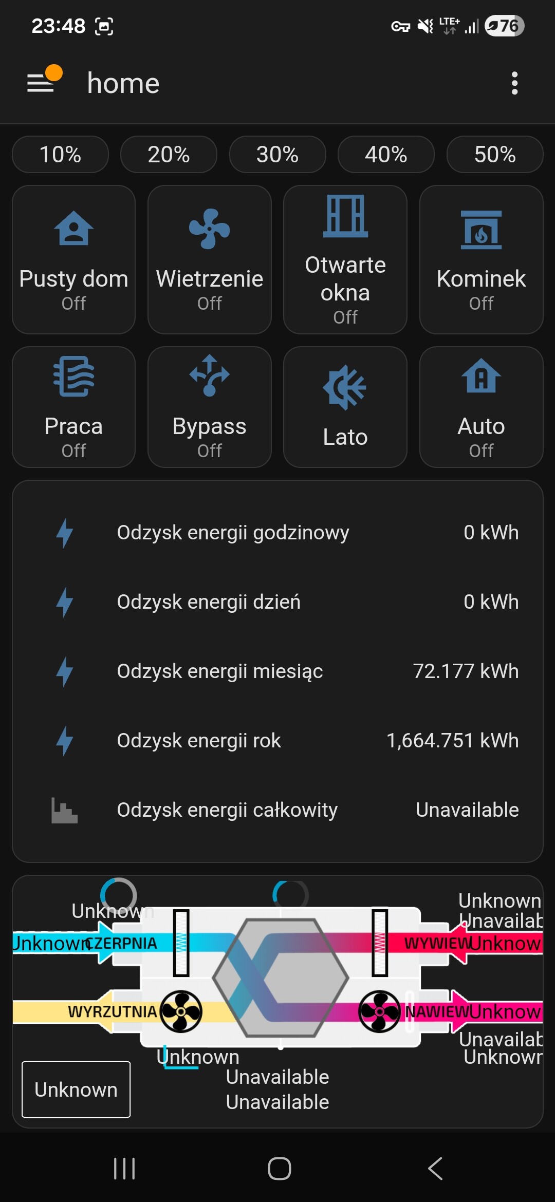 Ogólnie dotyczy się to wszystkich przełączników czy to wietrzenie czy włączony wyłączony rekuperator to stan się nie zmieni w HA