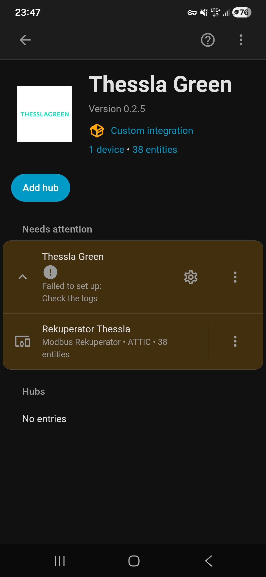 ok, u mnie siadło to po updejcie HA supervisora w wersji 2026.03.03… komunikacja w elfinach jest, ale juz nie gada z HA…sprobuje jeszcze restartu rekuperatora